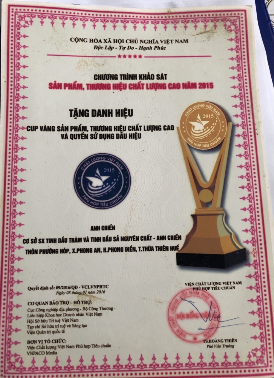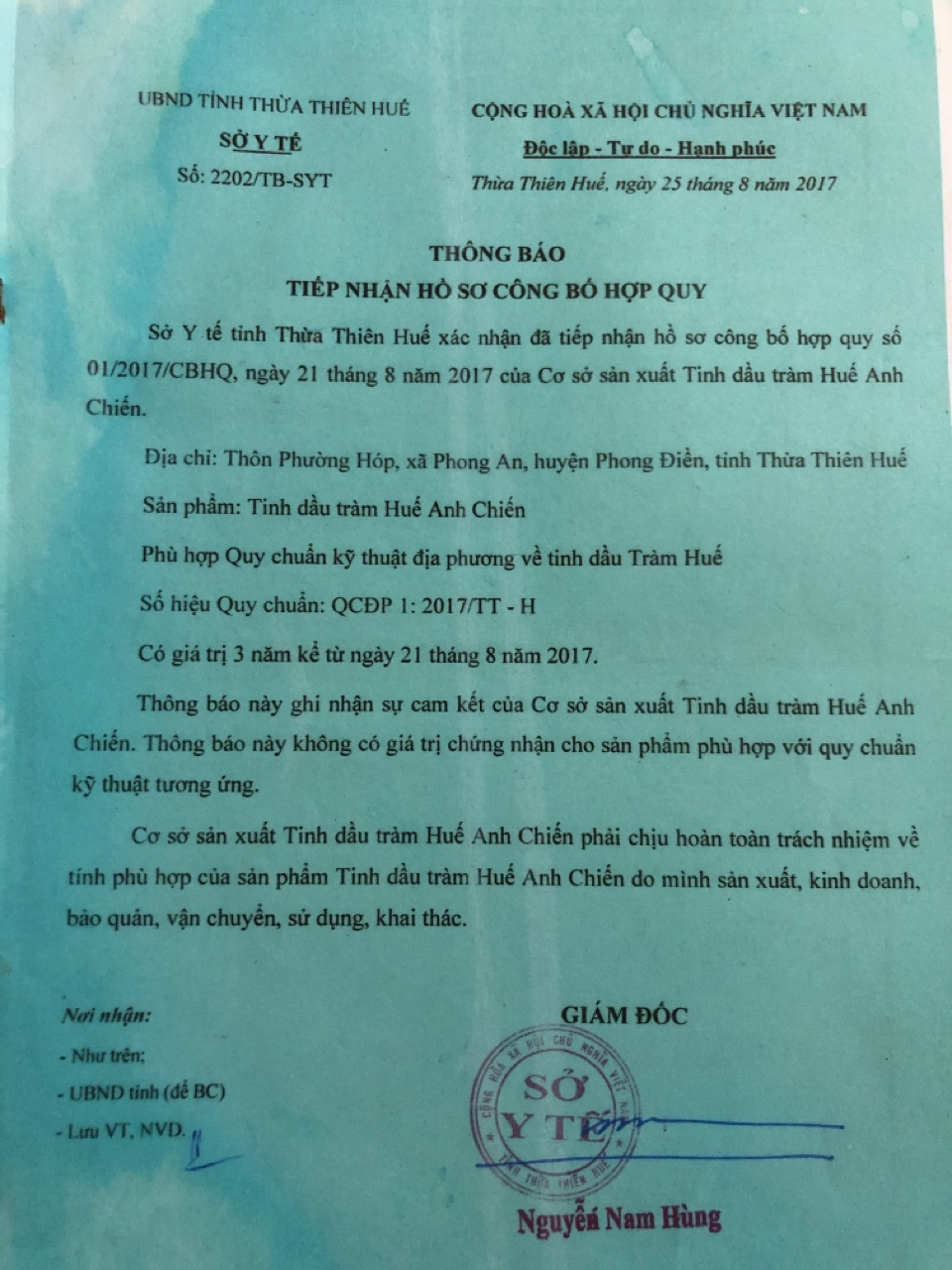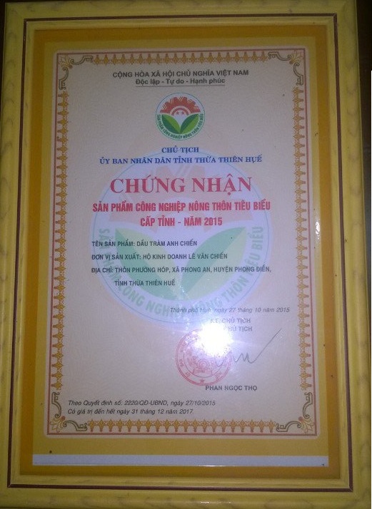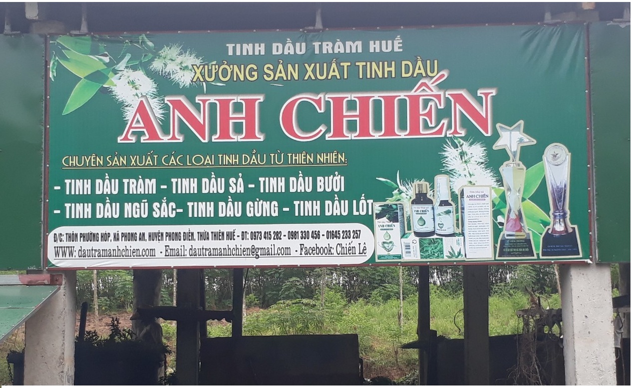 Dầu tràm Anh Chiến được sản xuất từ vùng nguyên liệu địa phương Thôn Phường Hóp, xã Phong An, huyện Phong Điền