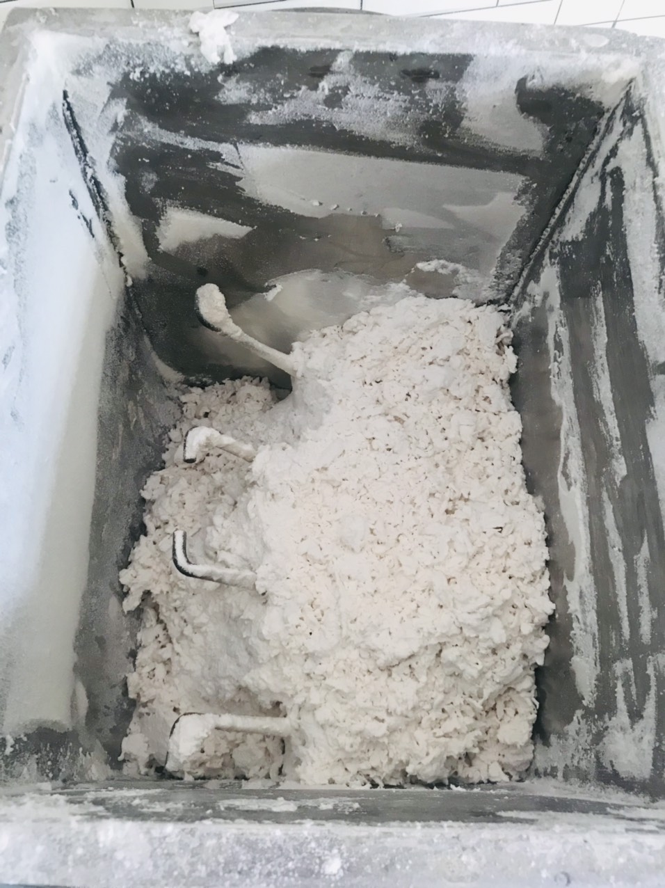 Bột mỳ với nước lọc theo tỷ lệ 15kg bột mỳ với 4 lít nước. Trong khoảng thời gian 15 phút hoặc đến khi thấy bột đều màu. Quá trình này nhằm tác dụng các lực cơ học để sắp xếp lại các hạt tinh bột làm chúng liên kết chặt chẽ với nhau giúp dễ tạo hình cho sợi bánh sau này. Nước cho vào có tác dụng làm tăng liên kết của khối bột và hồ hóa sơ bộ của bột mỳ, lượng nước thêm vào theo tỷ lệ nhất định vào yêu cầu về độ đặc của khối bột khi tạo hình.